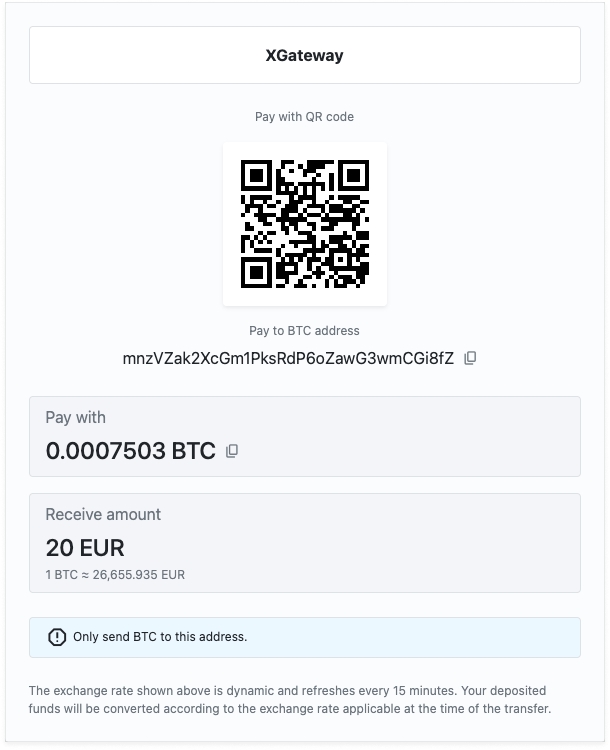 Wallet address - A unique generated wallet address where the customer will deposit funds.